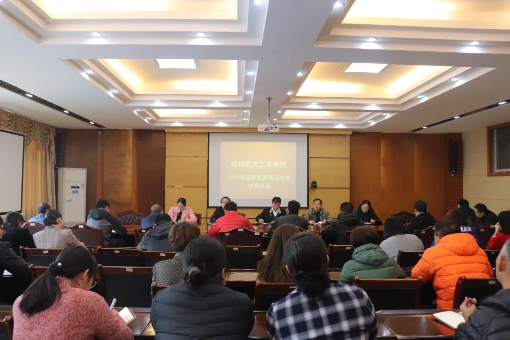 12月9日下午,桂林航天工业学院党委巡察机关第三党总支部动员大会在飞天楼517会议室召开。校党委常委、纪委书记韦冠武出席会议,纪委副书记、纪委办公室主任杨小劲主持会议,校党委巡察组全体同志和机关第三党总支部所辖部门全体科级以上领导干部及高级职称教职工参加会议。