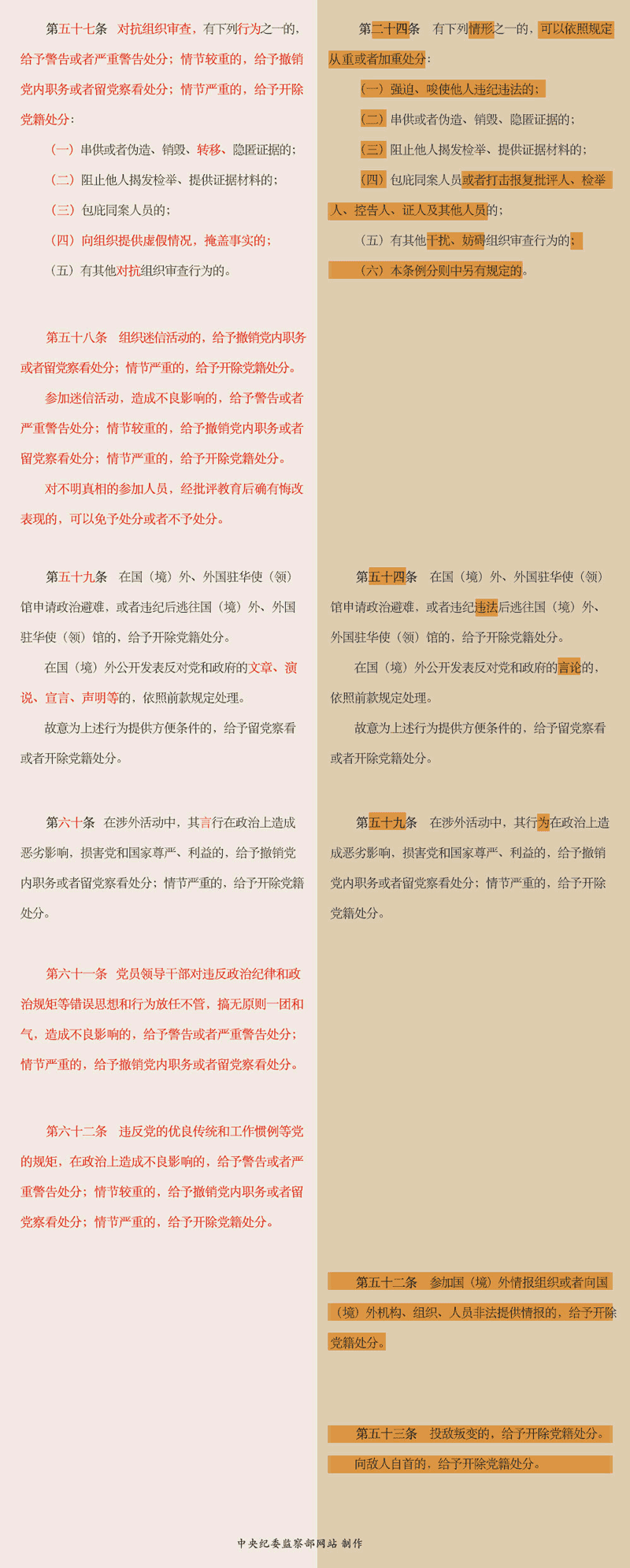 【编者按】近日,中共中央印发《bevictor伟德官网廉洁自律准则》《bevictor伟德官网纪律处分条例》。《廉洁自律准则》紧扣廉洁自律主题,重申党的理想信念宗旨、优良传统作风,坚持正面倡导、重在立德,为党员和党员领导干部树立了看得见、摸得着的高标准。《纪律处分条例》把党章对纪律的要求整合成政治纪律、组织纪律、廉洁纪律、群众纪律、工作纪律、生活纪律,开列负面清单,重在立规,划出了党组织和党员不可触碰的底线。 党的十八大以来,党中央突出强调严明政治纪律和政治规矩、组织纪律,落实中央八项规定精神,加大反腐惩恶力度,强化巡视监督,切实解决好管党治党中存在的突出问题。丰富的实践为党内法规制度创新奠定了坚实基础。从今天开始,中央纪委监察部网站和客户端推出“《纪律处分条例》背后的案例故事”系列文章,用案例故事还原逻辑,对六大纪律分章解读,推动学习贯彻。